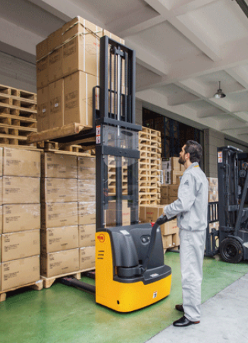 提升高度大約在1.8米時(根據所裝配的提升門架):高于安全接通高度時, 堆垛車將減低行駛速度至大約3km/h;