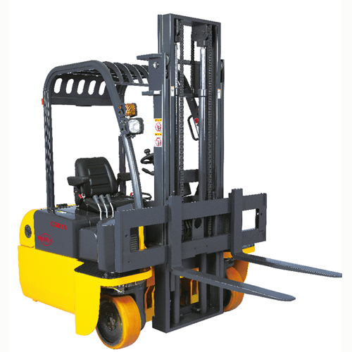 四向叉車以蓄電池為動力源,以電動機及其控制系統作為本車的動力系統,具有噪音小,無排放污染,綠色環保的特點。